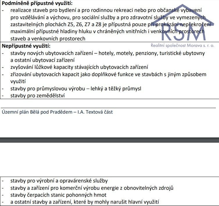 Jedná se o stavební pozemky ve funkčním celku o celkové výměře 1.195 m2, které jsou situovány v obci Bělá pod Pradědem. Pozemky se nachází v místní části obce Domašov u Jeseníka, a to v rezidenční zástavbě rodinných domů (kat. území Domašov u Jeseníka,). Vhodné půdorysné uspořádání pozemků zajišťuje kvalitní přístup po veřejné zpevněné komunikaci a zároveň nabízí možnost dostatečného soukromí k rekreaci a trávení volného času. Dle platného územního plánu obce Bělá pod Pradědem se pozemky nachází v zastavitelném území a jsou zahrnuty v obytných plochách (PLOCHY SMÍŠENÉ OBYTNÉ - VENKOVSKÉ SV viz ÚP). Jedná se především o bydlení v samostatných rodinných domech, nízkopodlažních bytových domech a o bydlení v rodinných domech venkovského charakteru s dostatečnou výměrou přídomové zahrady vhodné pro pěstování plodin nebo k chovu drobného zvířectva, což neumožňuje např. městská koncentrovaná zástavba se svými omezeními. Pozemky jsou vhodné jak pro stavbu, která bude sloužit k trvalému bydlení, tak pro stavbu určenou k rodinné rekreaci (zdejší krajina má význam z pohledu rekreačního, aktivní trávení volného času - lesy, lyžařská střediska, cykloturistika apod.). Veškeré IS jsou na hranici pozemku. V těsné blízkosti pozemků je autobusová zastávka Domašov (50 m), která zajišťuje dostupnost tohoto atraktivního místa.