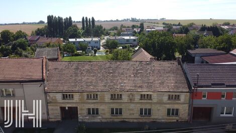 Nabízíme k prodeji stavební pozemek s původním starým vesnickým domem ze smíšeného zdiva ve tvaru L nacházející se v klidné části obce s minimálním provozem vzdálené 8 km od Prostějova uprostřed Hané. Pozemek je v řadové zástavbě obce, šířka pozemku do ulice je 23 m, hloubka cca 40 m. K dispozici je přípojka vody, elektřiny, kanalizace, plyn vede před domem. Pozemek je orientovaný na jižní stranu, oplocen, dvůr je částečně zatravněn a vydlážděn typickou dlažbou. Na dvoře se nachází původní kopaná studna, v domě je menší sklep. Původní stavba na pozemku je dům vel. 4+1 s průjezdem do dvora a komorami v podkroví. Pozemek je v klidné ulici s minimálním provozem. Do obce vede cyklostezka z Prostějova, autobusové a vlakové spojení. Celková výměra pozemku: 1.290 m2.